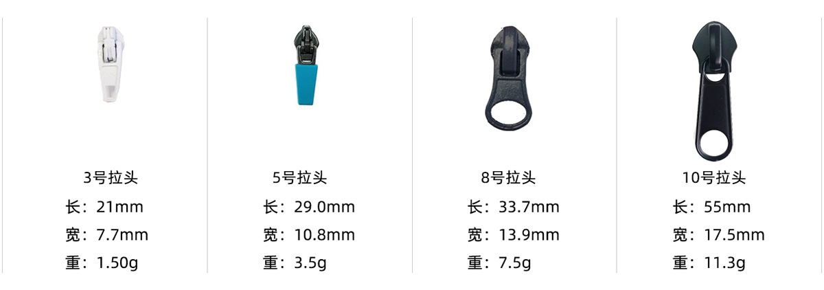选用优质锌合金材质压铸而成,拉头耐磨损
